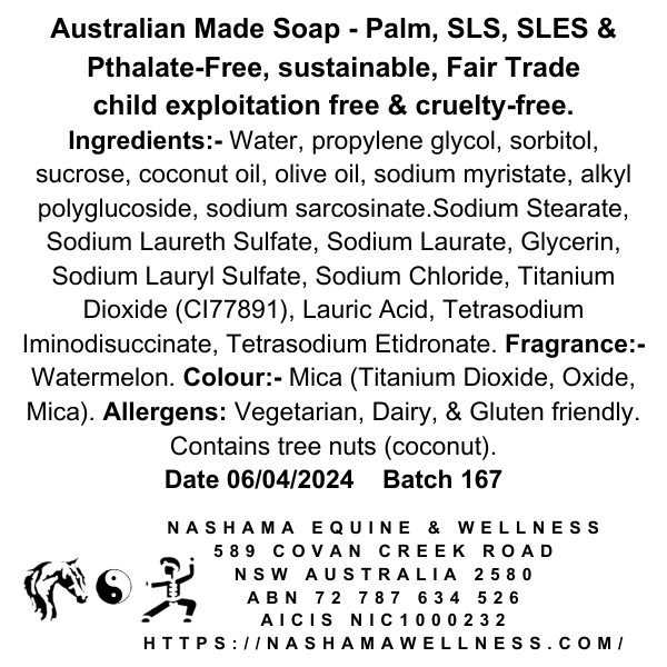 Allergens:- As a primarily Paleo soapery, our soap is grain-free and highly processed oil free with all ingredients sourced from minimal chemical load locations. We only make two goat's milk soaps so our soapery is generally dairy, gluten and vegan friendly. We use only Pthalate-free fragrance and certified child exploitation free micas. Our premium essential oils are used at 1-2% so are LOW FRAGRANCE as they are made to suit people who are unable to cope with highly scented products.